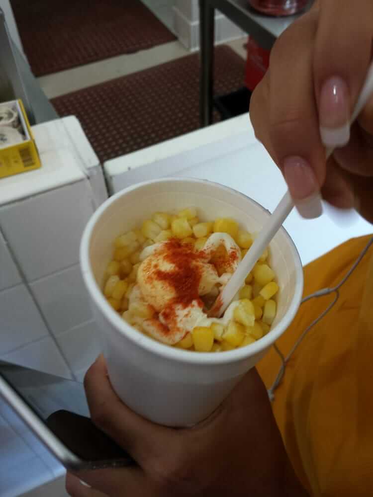 I love this place I think I order at least 2-4 times a week from here. Watermelon juice is the best. I've tried to banana split, corn, sandwiches, shrimp, and chili mangos. Delicious.and they deliver. I've found a great morning & afternoon snack place. I'm a loyal customer from now on.